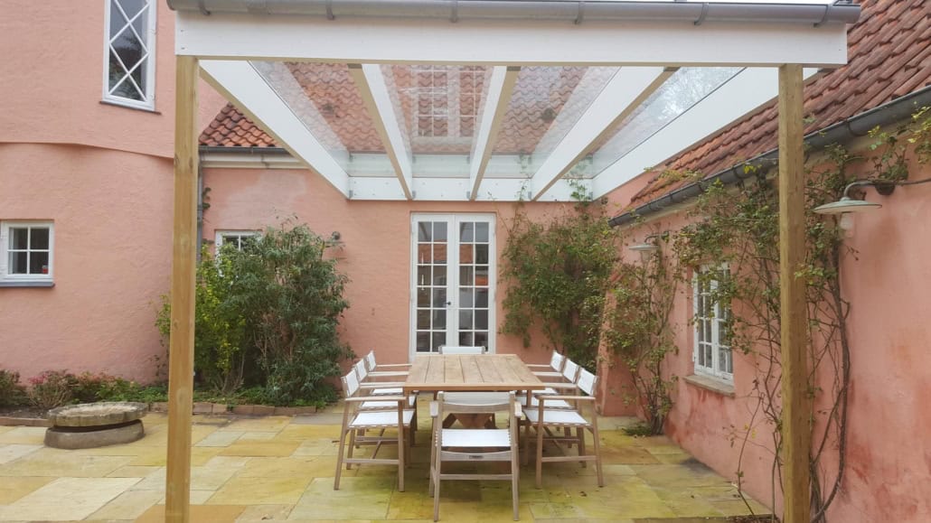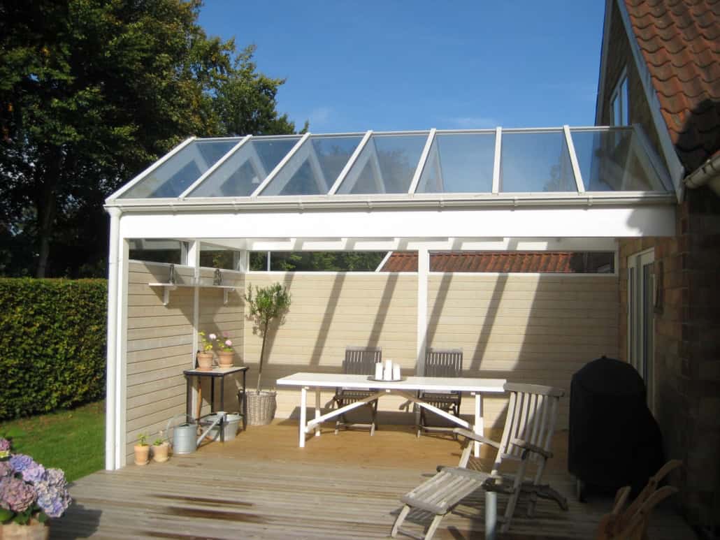 Når din overdækning i glas til terrassen skal opføres afvejer vi i samråd med dig, om overdækningen skal udføres med trækonstruktion eller som en løsning i jern eller aluminium. Ofte vælges en kombination af materialerne hvor hensynet til det ønskede udseende kombineres med de lette og stort set vedligeholdelsesfrie Aluminiumsmaterialer.
