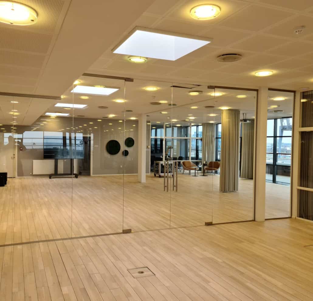 Ønsker du et møderum med glasvægge er der mulighed for ekstra lydisolering.