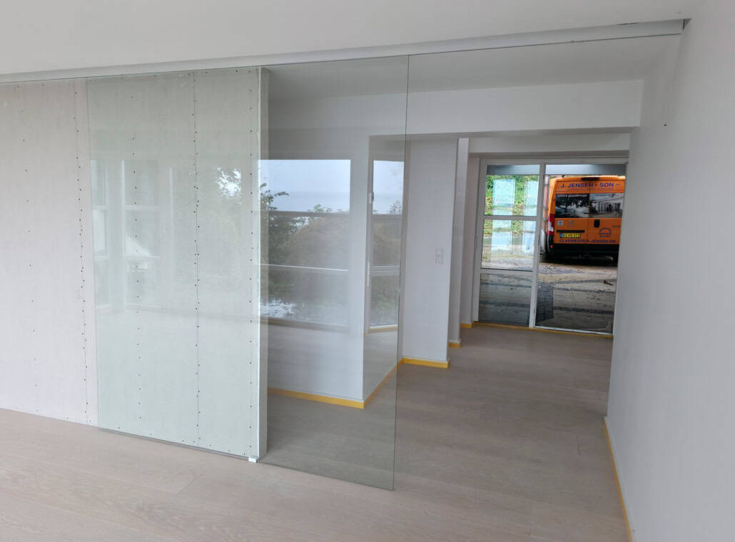 Glasdøre kan leveres både som opluksdøre og som skydedøre og monteres i systemer der sikrer en stabil og holdbar løsning.