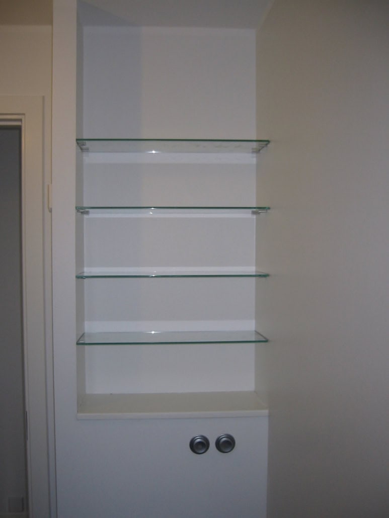 Glashylderne laves også til eksisterende skabe hvor de isættes i stedet for de lidt tungere faste laminathylder.