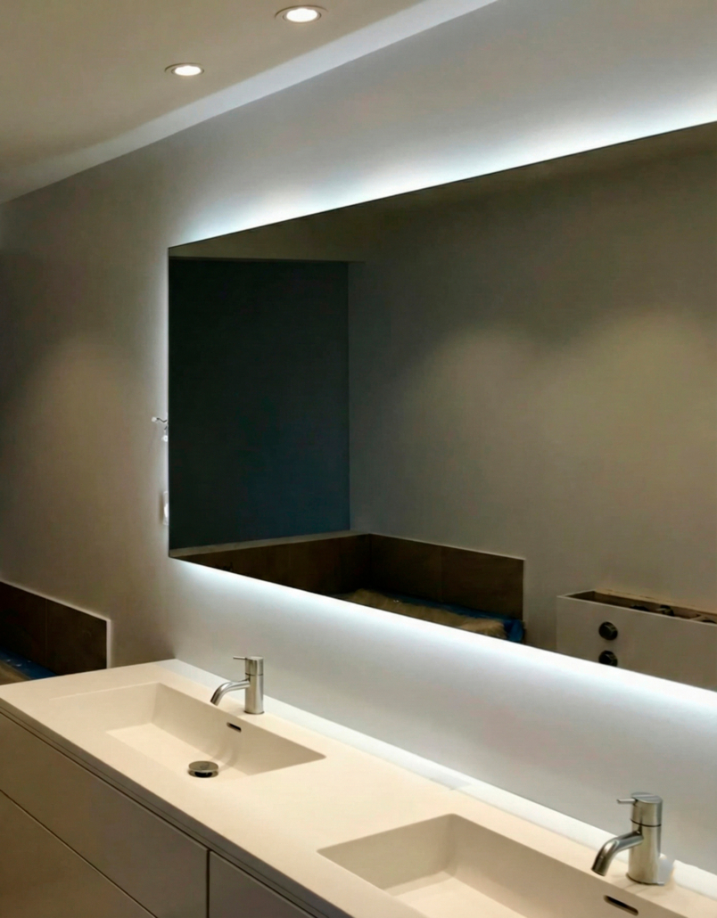 Har du specielle ønsker til spejlet som for eksempel facet kant, sandblæsning eller spejl med indsat lys hjælper vi dig på vej til den rigtige løsning.